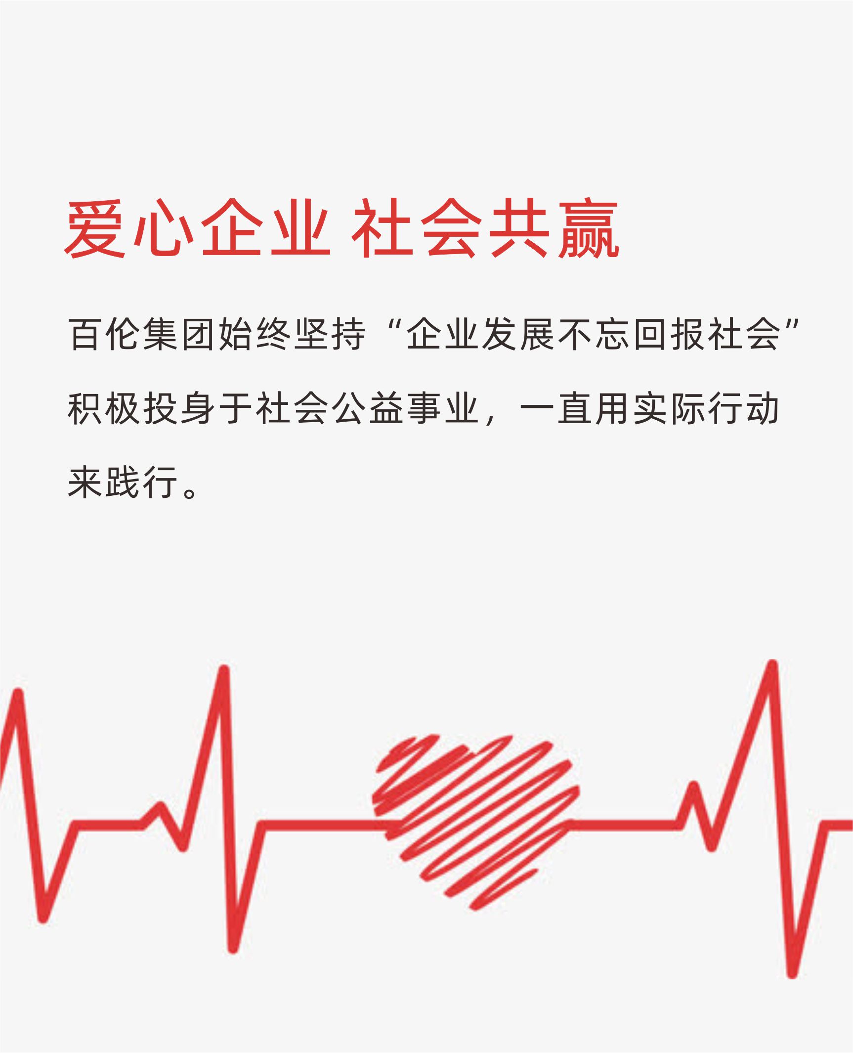 每一個成功的企業(yè),必然是使命與責(zé)任的共生。百倫集團(tuán)在不斷追求更高發(fā)展的同時,關(guān)注和投身于社會公益事業(yè),一路前行,實現(xiàn)經(jīng)濟(jì)效益與社會效益的和諧共贏。